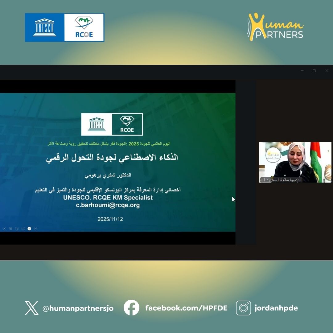 In a distinguished international participation, Dr. Saeda Al-Manshawi, Director General of Human Partners for Training and Education, moderated the third session titled “Learning Without Borders” at the International Forum for World Quality Day 2025.